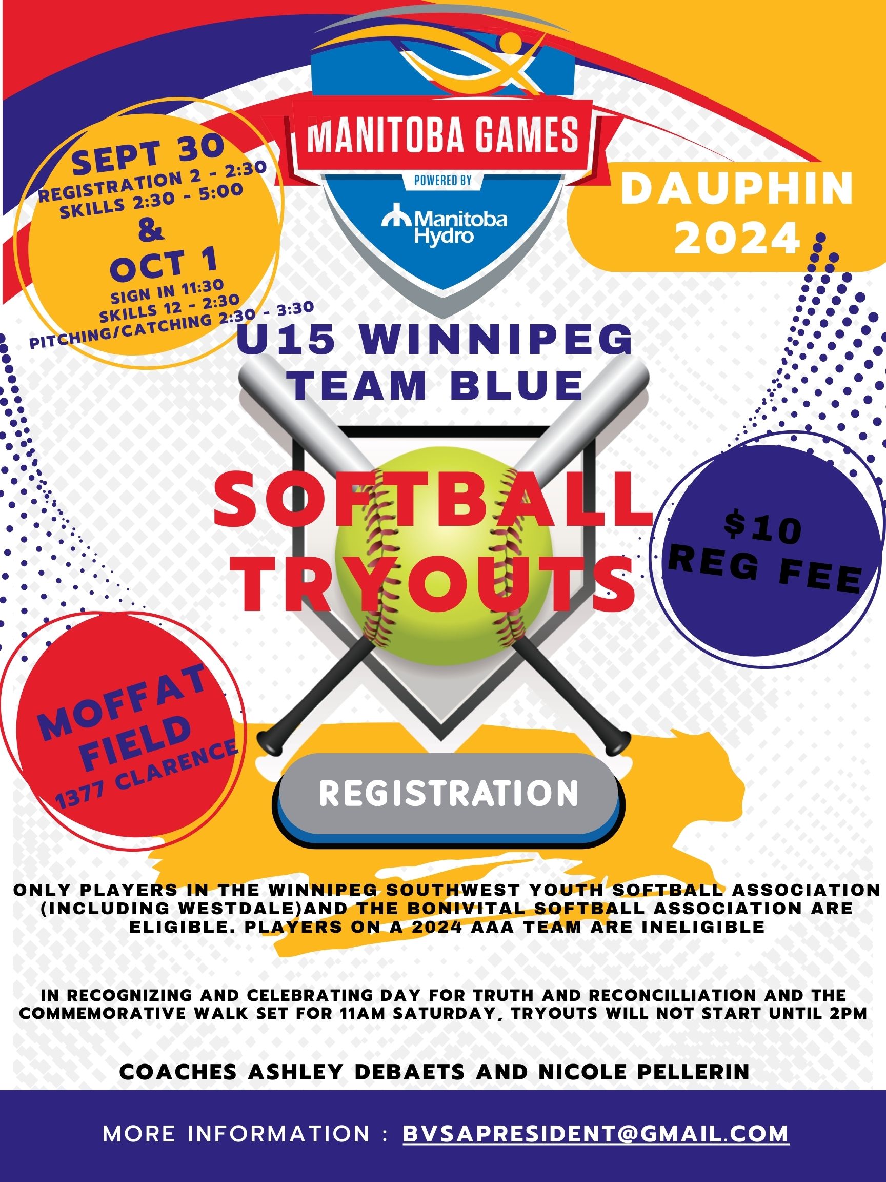 Tryouts are only available to A and AA softball players. If you are on a AAA team, you are ineligible to tryout.